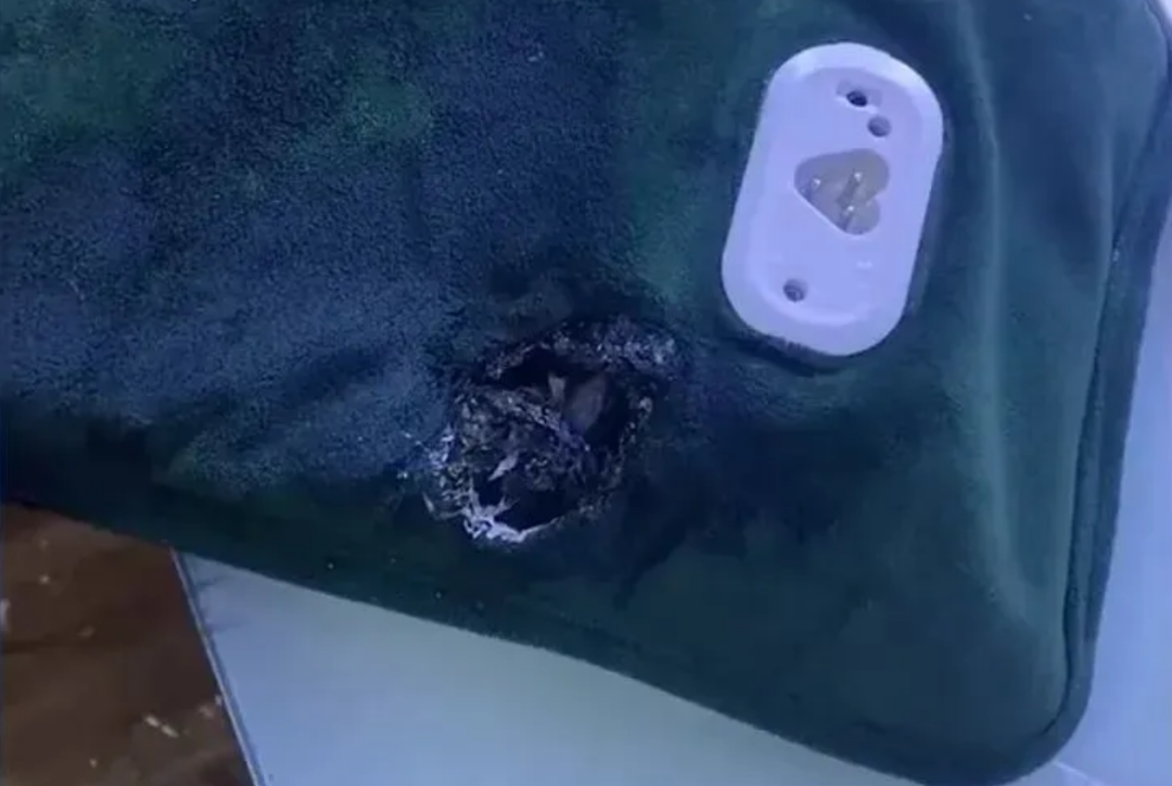 10月13日,內蒙古呼和浩特劉(liú)女士,剛充上三四十(shí)秒(miǎo)的暖水袋,突然起火燃燒。